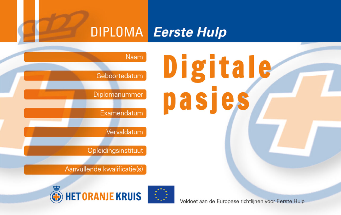 Na succesvolle afronding van de training ontvang je een Oranje Kruis-certificaat, wat je kwalificeert als erkend eerstehulpverlener. Het certificaat is 2 jaar geldig.