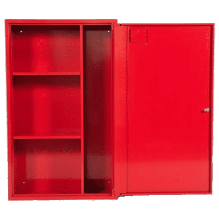 De BHV kast is gemaakt van rood gemoffelde staalplaat en voorzien van 1 cilinderslot met 2 sleutels en wordt geleverd zonder inhoud.