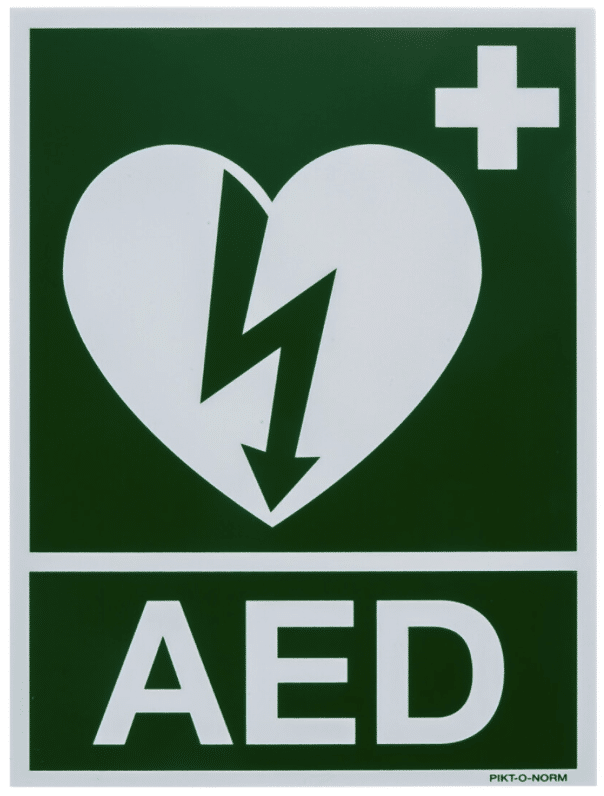 Bord AED met officiëel Ilcor logo, Materiaal: Polypropyleen (PP)