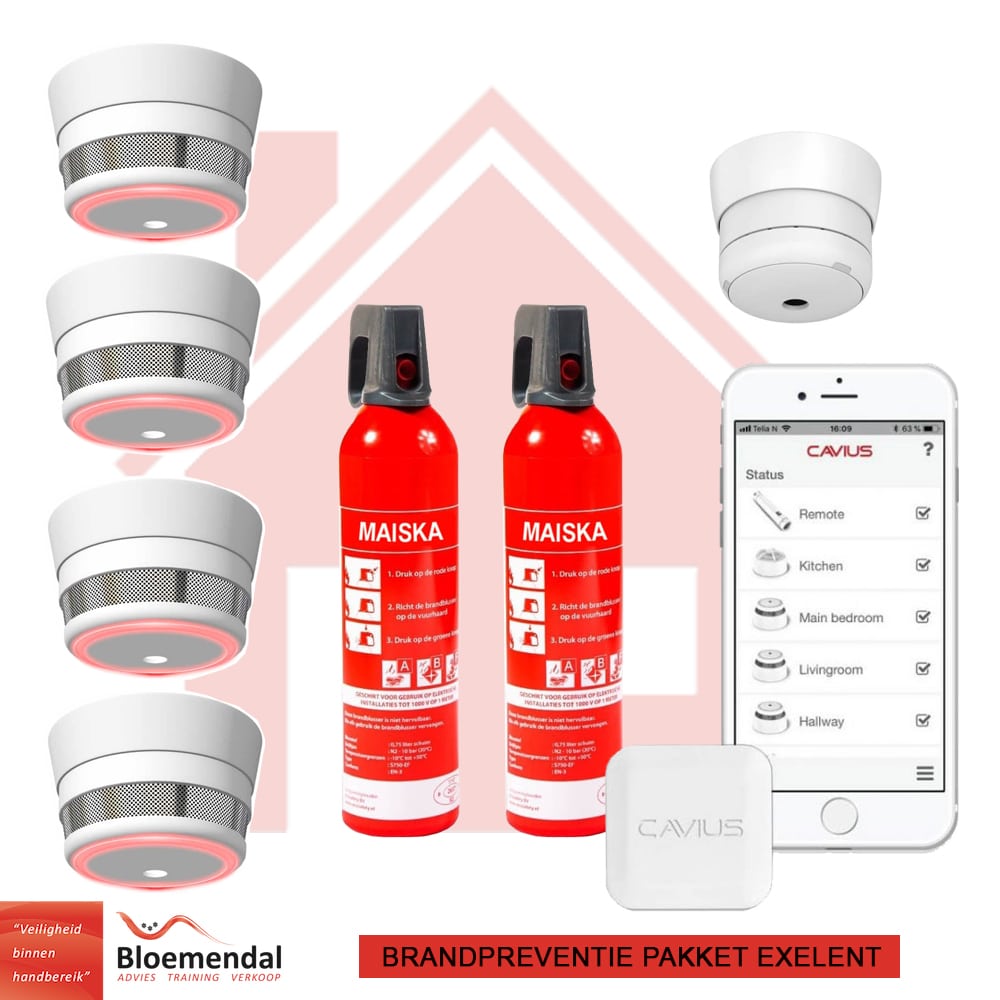 Deze EXCELLENT brandpreventie pakket is ideaal te gebruiken voor een ruime woning, gezinswoning, 2 onder 1 kap woning of appartement. Dit uitgebreide brandpreventie pakket bevat producten van de hoogwaardige merken zoals: Cavius en Maiska.