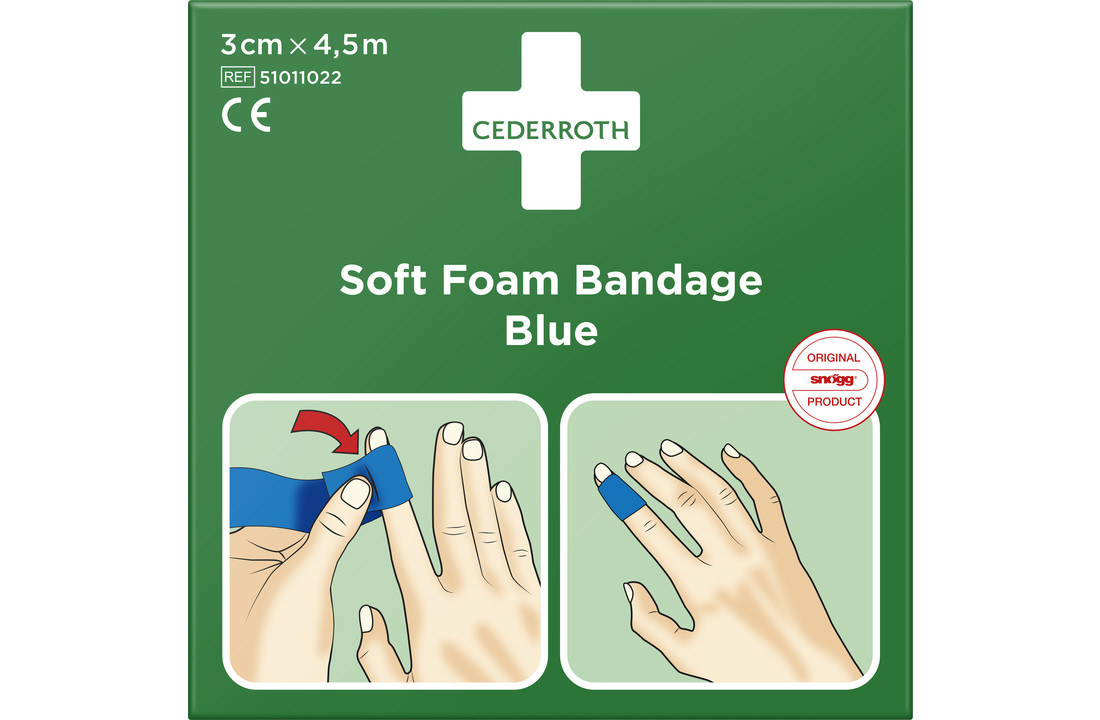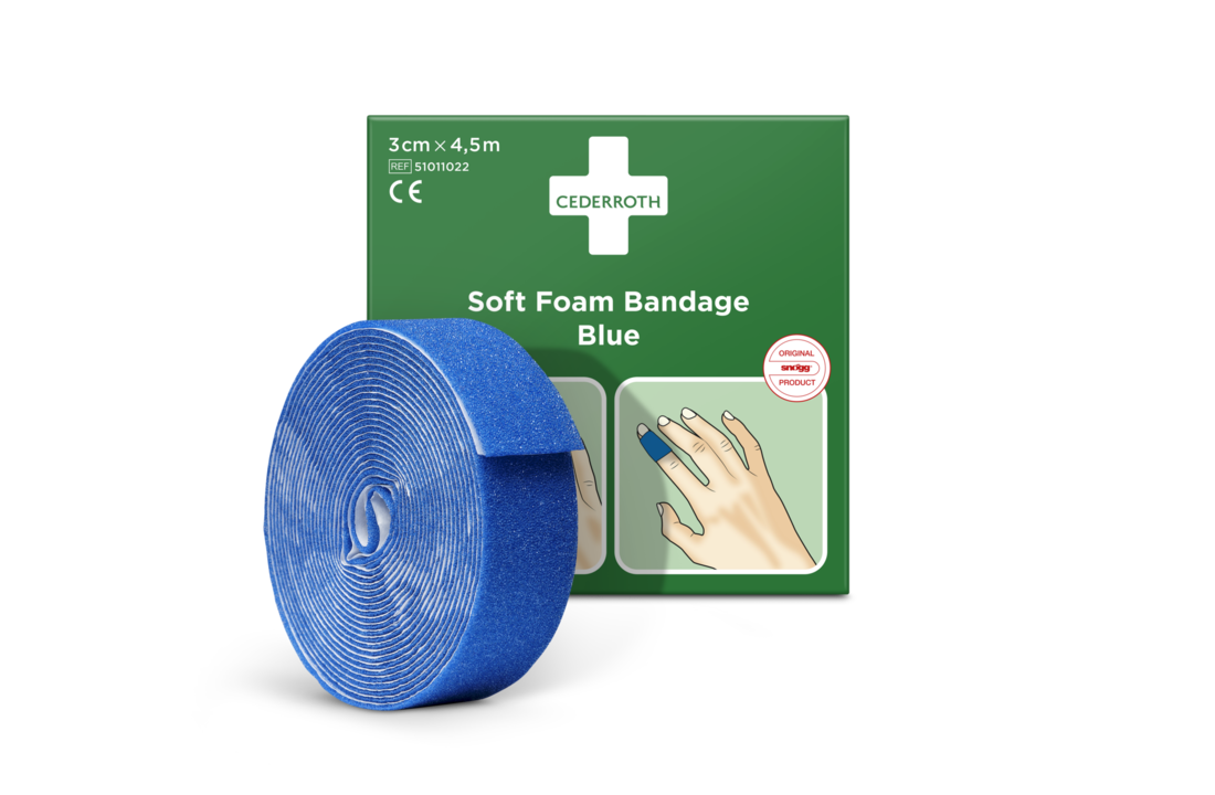 De Cederroth Soft Foam Bandage Blauw is een comfortabele, waterbestendige bandage van hypoallergeen materiaal. Het ademende, flexibele verband is zelfklevend en bevat geen lijm. Het kan gebruikt worden in combinatie met gel en crème.