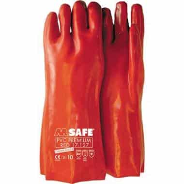 De M-Safe PVC Premium Red 17-127 Chembarrier werkhandschoenen zijn dubbel gedipt woordoor deze werkhandschoen een uitstekende handbescherming biedt tegen diverse chemicaliën. De M-Safe PVC Premium Red 17-127 handschoenen zijn 270 mm lang en zijn voorzien van een interlock voering en hebben een comfortabele pasvorm.