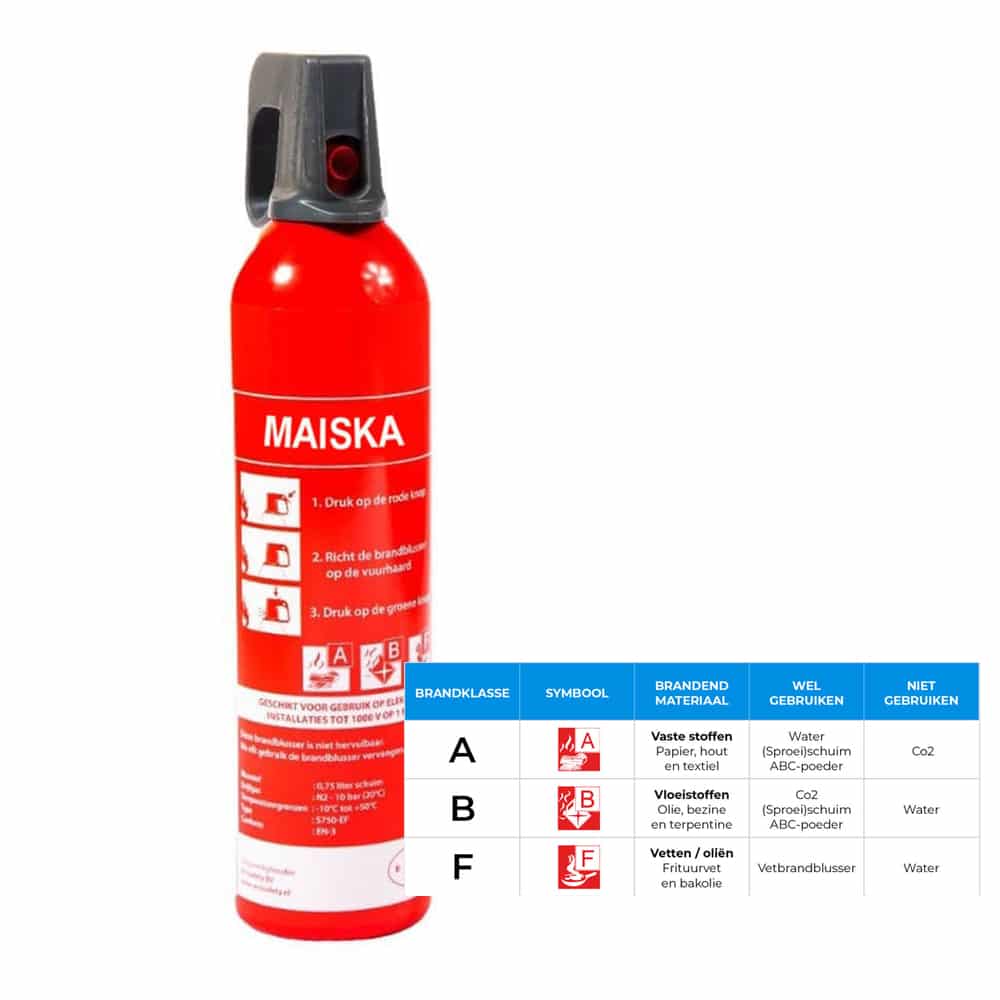 - Deze blusser is zowel geschikt om branden met vaste stoffen, vloeistof én met vet te kunnen blussen