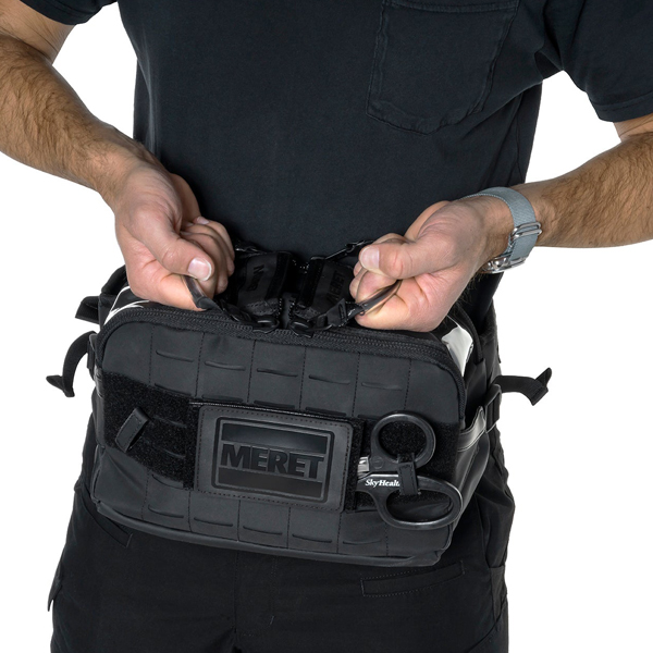 De FIRST-IN⢠PRO X Sidepack is een handsfree oplossing, ergonomisch ontworpen voor gebruik als heuptasje of schouder-/crossbodytas. Met behulp van EZ-Grab-trekstangen openen de twee bovenpanelen van de FIRST-IN⢠PRO snel naar een hoofdcompartiment dat kan worden aangepast met behulp van het innovatieve SLIDER-systeem. Met Flip-out⢠webbing-riemen kun je taperollen bevestigen die snel kunnen worden ingezet terwijl ze nog aan de tas zijn bevestigd. De schaar kan worden geplaatst en vastgezet in een verwijderbaar zakje aan de voorkant van de tas voor gemakkelijke toegang. Of je kunt het zakje verwijderen en de plakband gebruiken voor een persoonlijke ID, of de MOLLE gebruiken voor het bevestigen van een compatibel accessoire. Versterkte zijbanden bieden dubbele radio- en semafoonbevestigingen. Een stressverlagend heupgordelsysteem maakt gebruik van brede banden, een grote, gebruiksvriendelijke gesp en een gewatteerd lendenkussen om de druk op de zij- of onderrug te verminderen.