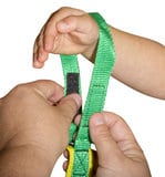 Ieder kind houdt een gekleurde lus vast, of wordt met behulp van Velcro klittenband aan de lus vastgemaakt voor extra veiligheid.