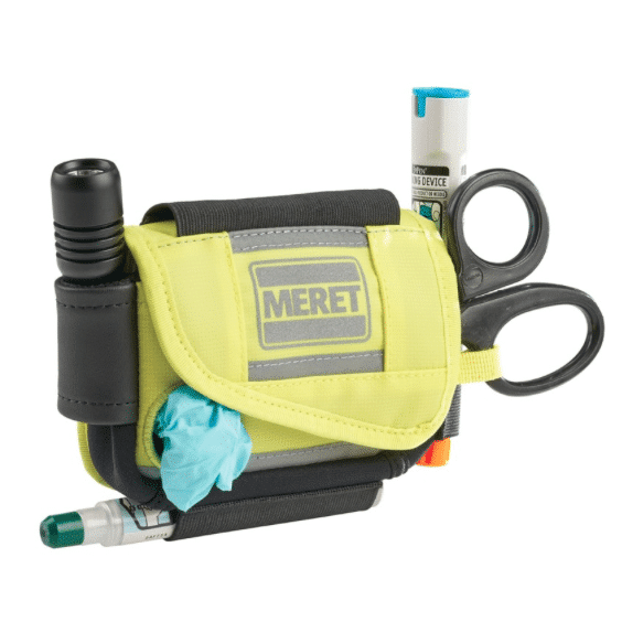 Tijdens de First Aid Under Danger cursussen bied de PPE PROPACK de mogelijkheid om een groot deel van je uitrusting makkelijk bij je te dragen. Door zijn slimme ontwerp en sterke materiaal heeft de PPE PROPACK een in verhouding grote capaciteit. De PPE PROPACK is voorzien van een speciaal handschoenen compartiment die vanaf de buitenkant makkelijk te benaderen is. De boven en onderkant van de PPE PROPACK zijn voorzien van hoogwaardig elastiek waar bijvoorbeeld een reflexlamp of reddingsmes onder bevestigd kunnen worden. Tevens is er een speciaal compartiment voor de schaar. Deze kan makkelijk geborgd worden zodat de schaar veilig blijft zitten. De zijkant van de PPE PROPACK biedt de mogelijkheid om extra materiaal aan te bevestigingen zoals zaklamp, tang of mondmasker.