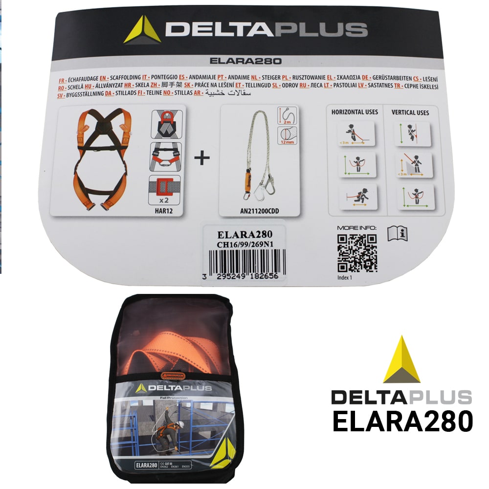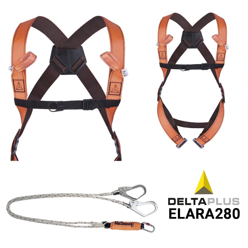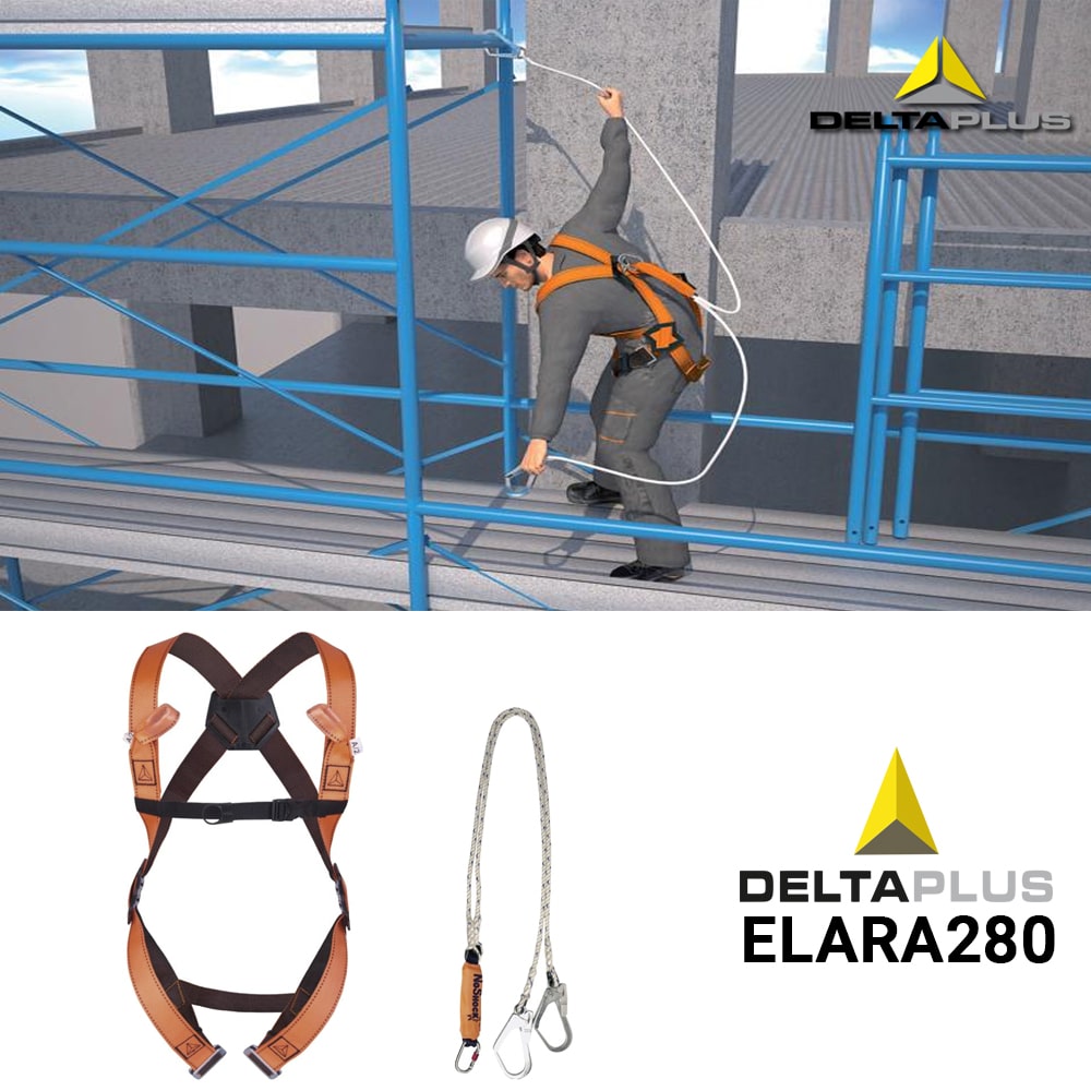 De Elara 280 Valbeveiliging set is een pakket voor valbeveiliging met verschillende toepassingen. Deze set bestaat uit een comfortabele valbescherming harnas, een valbeveiligingssysteem met dubbele vallijn en dubbele steigerhaak.