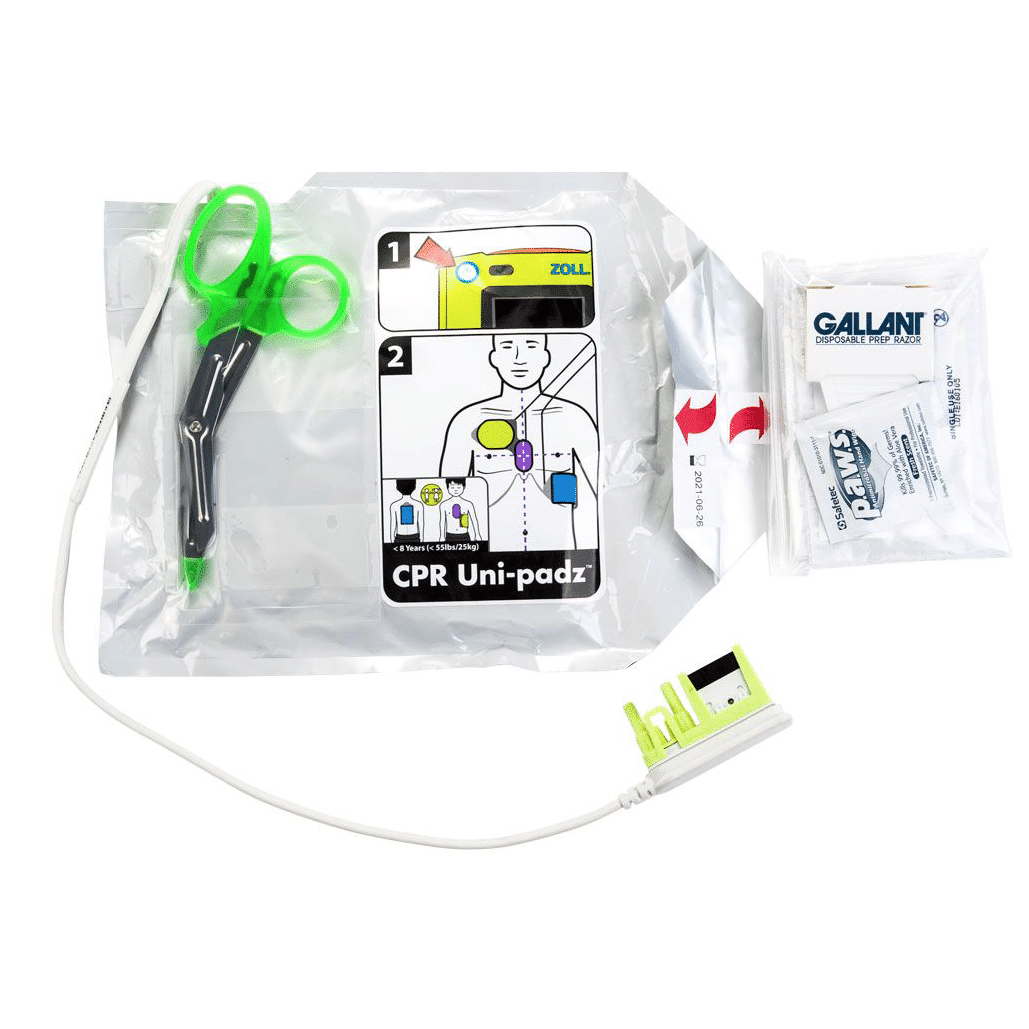 - ZOLL AED 3 CPR Uni-padz Elektroden: Geschikt voor zowel kinderen als volwassenen, met een houdbaarheid van 5 jaar. Voorzien van een reanimatiesensor voor real-time feedback.